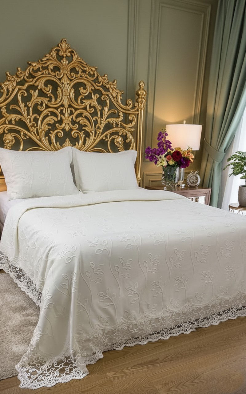 Dantelli Kadife Yatak Örtüsü 6 Parça
